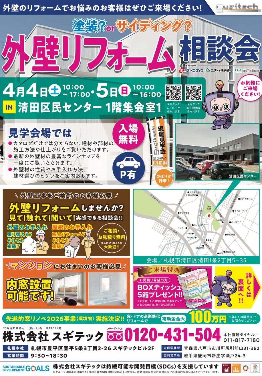 【札幌市】3/20金・21土・22日は『手稲コミュニティセンター』で外壁リフォーム展示相談会‼